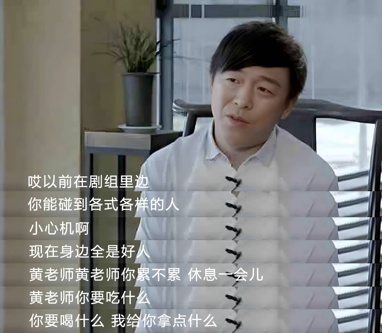 “当然有,怎么会没有?以前唱歌的时候,天天去都是冷遇……之前在剧组里面,你做小演员,包括你去演各种小角色的时候,那可不是嘛!谁搭理你啊?回去,没车。没车等会吧。过一会儿车送完饭——送饭的车,里面飘扬着各种味道——之后就给你送回去,那已经不错了。现在,怎么可能呢?你下来车早等好了。以前在剧组里面你能碰到各式各样的人,各种小心机啊,现在身边全是好人,每一张都是洋溢的笑脸。黄老师黄老师,你累不累,休息一会儿。黄老师,你要吃什么,喝什么,我给你拿点什么?黄老师,你太辛苦了。以前,辛苦?干的就是这一行,谁让你来了,谁叫你来了?”