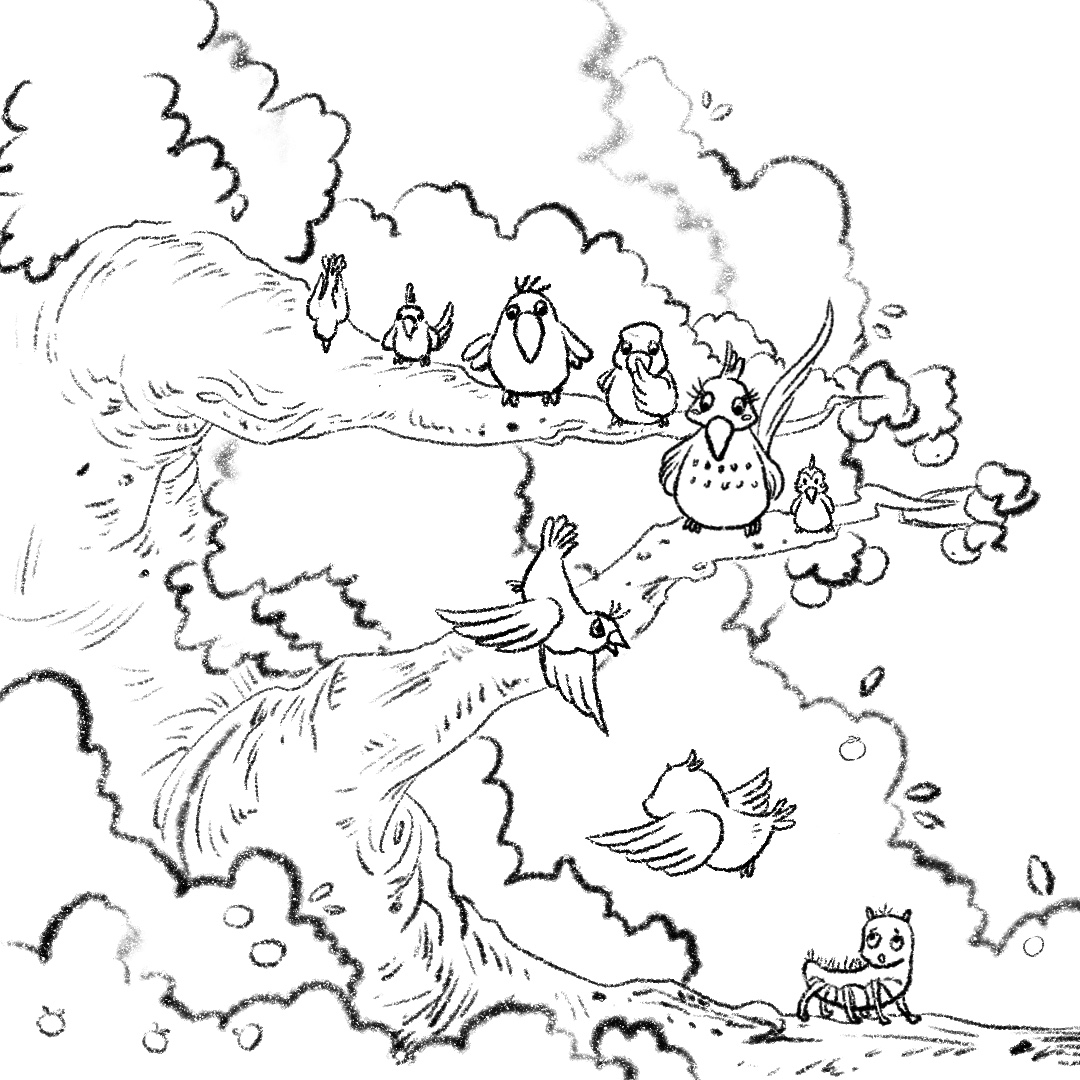 队形乱了,歌声乱了,小黄鹂很生气,吆喝大家往更高的树枝集合。不等火辣辣往高处爬,小黄鹂就大声斥责:“火辣辣不要过来,合唱队不适合你!”