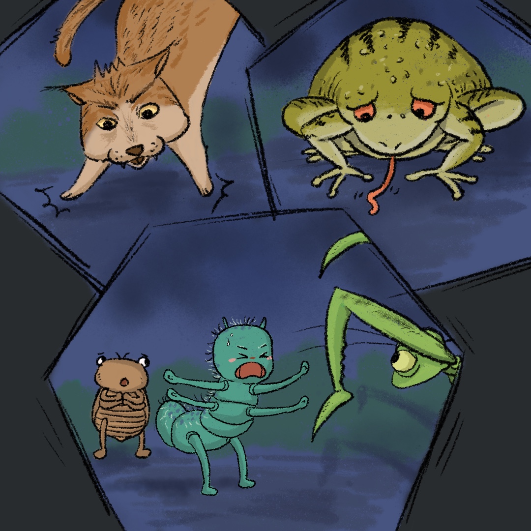 “呜呜,火辣辣我没法蜕壳了!”知了猴需要从地底爬到树上蜕壳,等翅膀变硬,就会成为会飞的知了。可是今年形势很严峻,外面有很多天敌,它的小伙伴都被觅食的野猫和蛤蟆吃到肚子里去了。知了猴努力了几次都没法从洞穴中安全出门。根本没办法爬到树上,更没办法蜕壳。