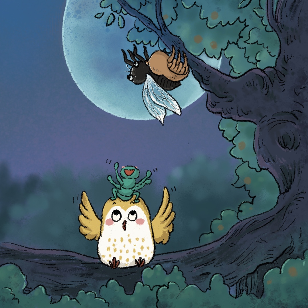夜深了,一切都很安静,柿子树陷入了睡眠,火辣辣带着知了猴终于爬上了最高的树枝。叽叽喳和火辣辣看着知了猴蜕壳,嫩嫩的身体从背部膨出,月色下,它伸展柔软脆弱的双翅。